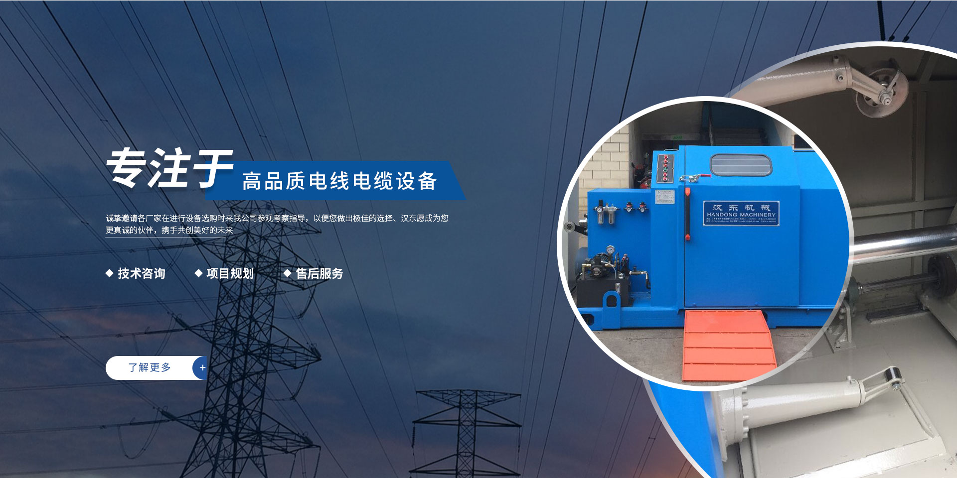 常州漢東機(jī)械始創(chuàng)于2006年,是集電線電纜機(jī)械設(shè)計(jì)、開發(fā)、制造、安裝、調(diào)試為一體化的高科技企業(yè)。本公司自開業(yè)以來,積極引進(jìn)日本,歐美等國外電線電纜設(shè)備之先進(jìn)技術(shù),先后成功推出了達(dá)到行業(yè)先進(jìn)水平的電線電纜設(shè)備,主要產(chǎn)品有擠出、繞包、束線、成纜等電線電纜固定設(shè)備。在提供系統(tǒng)設(shè)備的同時,還向客戶提供售前技術(shù)咨詢、項(xiàng)目規(guī)劃、以及售后服務(wù)。我公司本著“以人為本、科技先導(dǎo)、用戶為上”的宗旨,為客戶提供牢靠的產(chǎn)品與省心的服務(wù)。漢東愿成為您更真誠的伙伴,攜手共創(chuàng)美好的未來! 了解更多+大核心優(yōu)勢